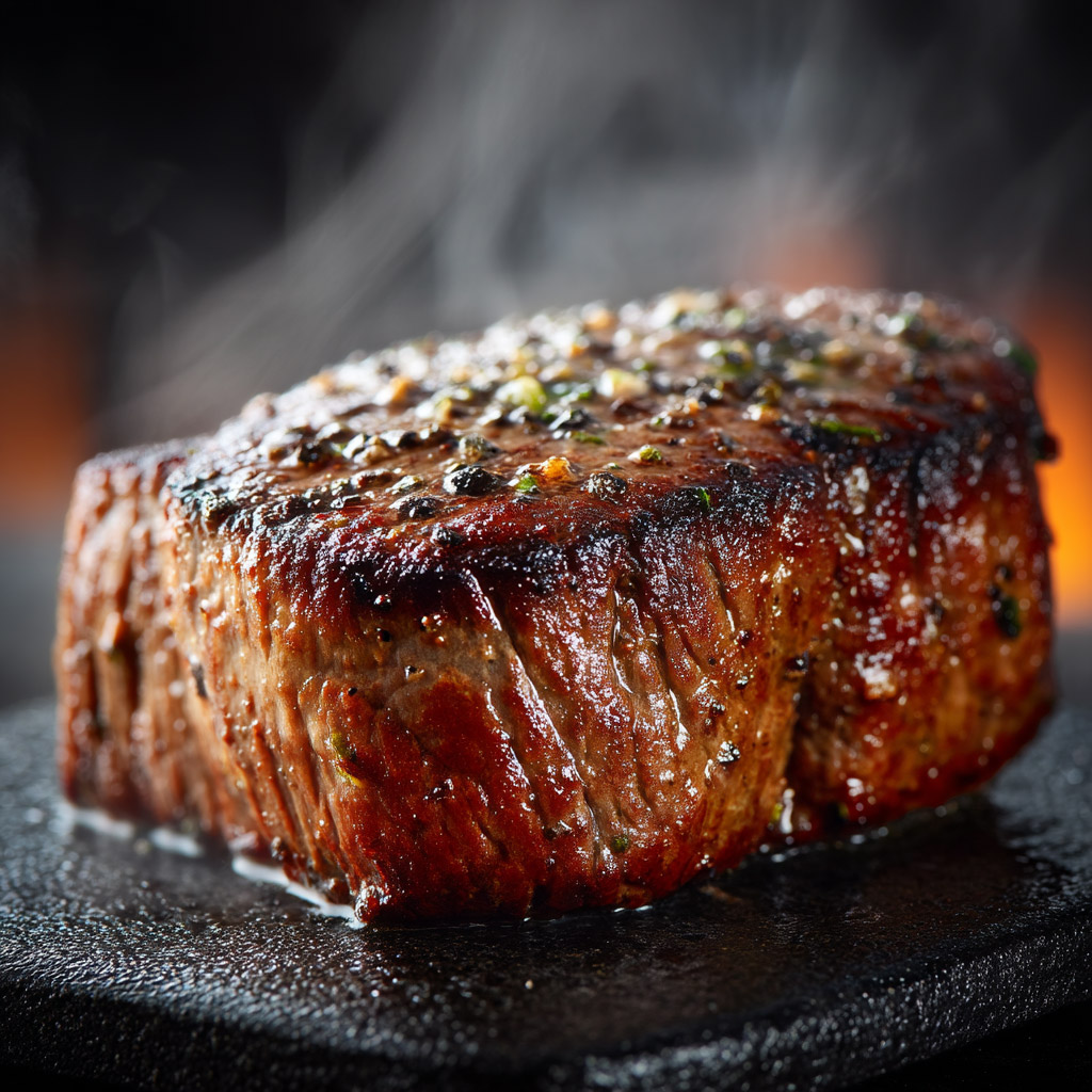Filet Mignon — aged, hand-cut, and seared by you on our 650°F lava stone. Buttery, tender, unforgettable.